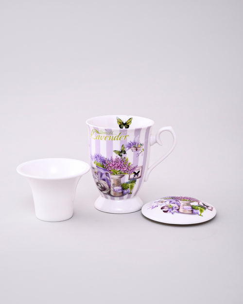 Bring elegance and convenience to your tea time with this beautifully designed Infuser Tea Mug. Crafted from premium-quality ceramic, it comes with a removable infuser and matching lid, making it perfect for brewing loose-leaf tea with ease. The fine floral patterns and artistic prints add a touch of sophistication, while the sturdy handle ensures a comfortable grip.
