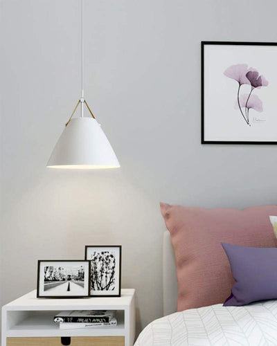 This Leather Strap Pendant Light features a beautiful cone shape that adds a touch of elegance to any room. The leather straps provide a unique and stylish element, making it a perfect accent piece for your home decor.