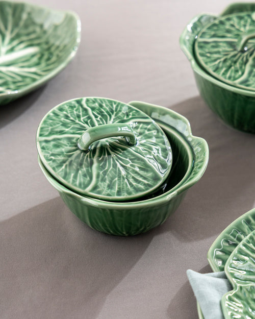 Nature-inspired ceramic tableware with an elegant lettuce leaf design and detailed vein texture. Fresh green glaze ke saath ye collection dining table ko organic, premium look deta hai. Daily dining, serving, snacks aur special occasions ke liye perfect. Durable ceramic material, smooth glossy finish, easy to clean & long-lasting shine.