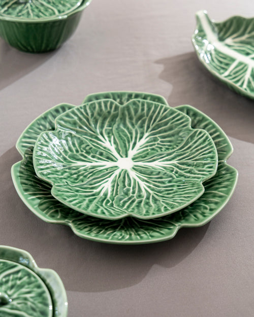 Nature-inspired ceramic tableware with an elegant lettuce leaf design and detailed vein texture. Fresh green glaze ke saath ye collection dining table ko organic, premium look deta hai. Daily dining, serving, snacks aur special occasions ke liye perfect. Durable ceramic material, smooth glossy finish, easy to clean & long-lasting shine.