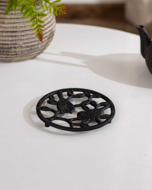 Protect tables and countertops with our intricately detailed cast-iron trivets, which safely elevate hot casserole dishes, baking pans and soup pots above surfaces. With an ornate design that invokes vintage scrollwork, our heat-resistant trivets make an appealing centerpiece.