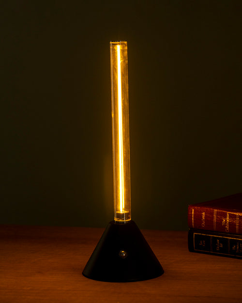 Modern LED desk lamp with a slim vertical glass tube and a strong black base. Offers soft and focused light for work, study, or decoration. Touch button switch for easy on/off, compact design that fits perfectly on a desk, side table, or shelf. Minimal and stylish, perfect for modern homes.