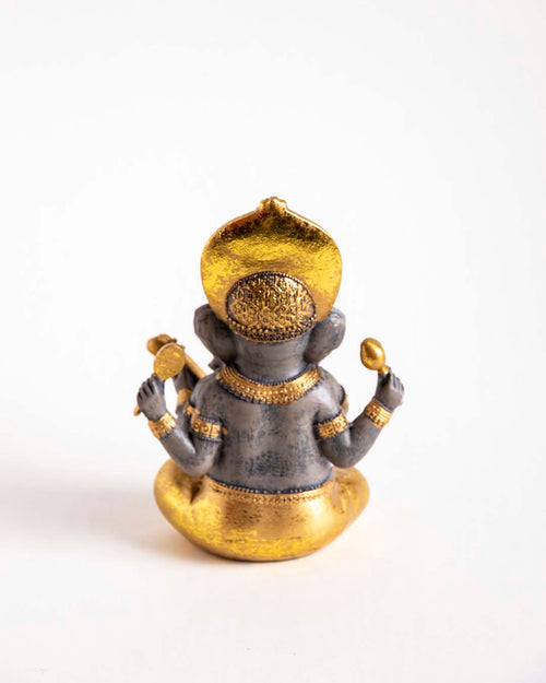 This beautifully crafted sculpture of Ganesha exudes a calming presence, symbolizing blessings and auspiciousness. Designed with meticulous detail, it serves as both an elegant decorative piece and a reminder of inner peace and spiritual wisdom. Perfect for your home or office, it invites harmony and joy, honoring the revered deity who removes obstacles and brings success.