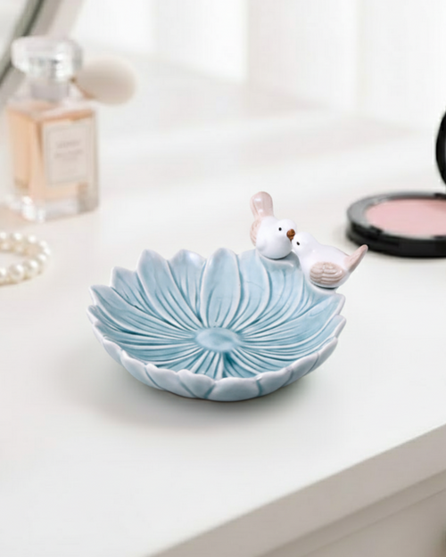 Lovebirds Ceramic Ring Dish - Sky Blue