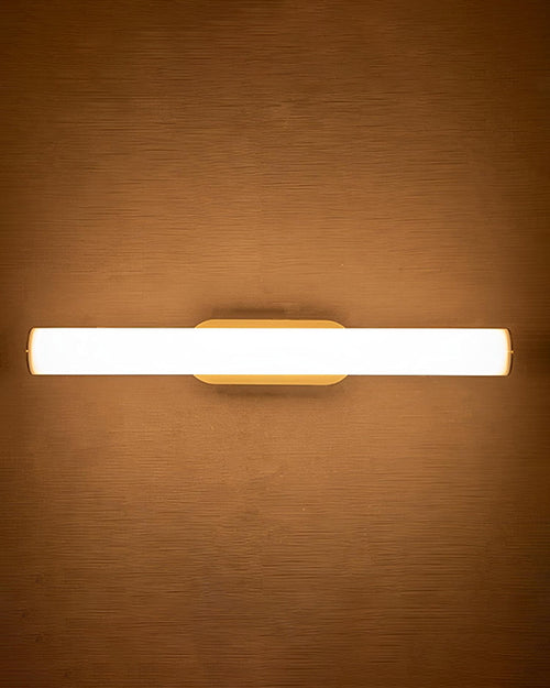 A sleek and modern wall-mounted mirror light, the LumiGlow features a cylindrical frosted diffuser that emits a soft, even glow ideal for bathroom mirrors or vanity setups. The minimalistic design, complemented by a warm gold-finish base, adds elegance while providing functional brightness. Its seamless tube form offers both aesthetic appeal and efficient lighting, perfect for contemporary interiors where clean lines and subtle sophistication are key.