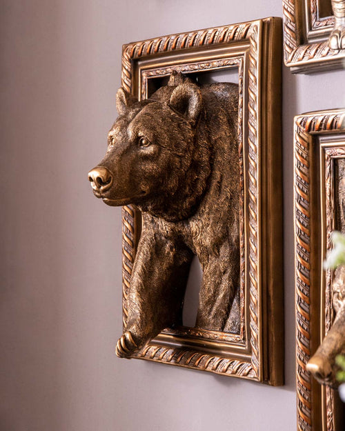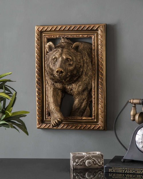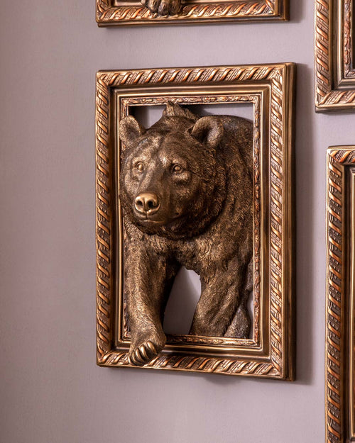 Embrace the wilderness within your own home with this striking bear sculpture encased in a frame, a true masterpiece of form and design.