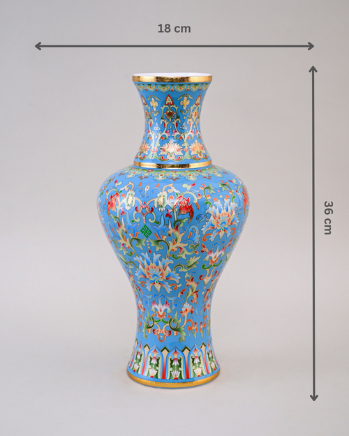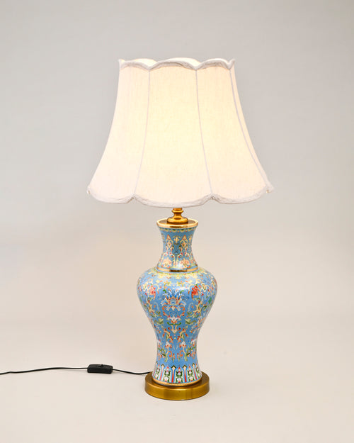 The Majestic Enamel Cloisonne Flower Table Lamp is a masterpiece of timeless elegance, featuring intricate hand-enameled floral patterns with stunning golden accents on a serene blue backdrop. Its luxurious design and flawless craftsmanship make it a perfect statement décor piece for living rooms, hallways, or dining spaces.