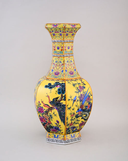 Midnight Bird Motifs Cloisonné Vase - Yellow
