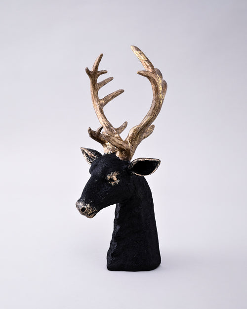 Bring sophistication and strength to your interiors with the Midnight Majesty Deer Decorative Figurine. Crafted with a smooth black finish and highlighted by golden antlers, this elegant sculpture exudes modern luxury. Ideal for living rooms, offices, or display shelves, it adds a touch of bold charm and artistic refinement to any space.