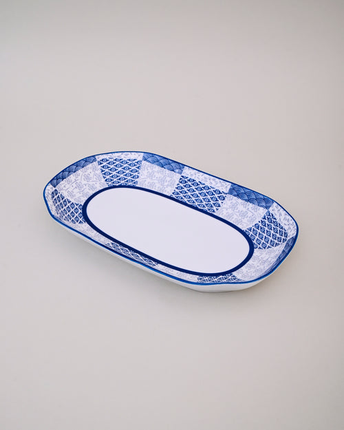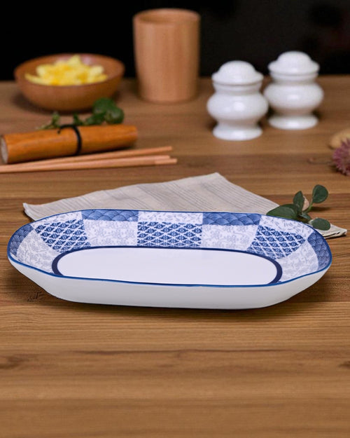 The Midnight Mosaic Ceramic Platter is a stunning fusion of traditional charm and modern elegance. Adorned with deep blue mosaic artistry, this platter enhances the beauty of your table while serving starters, snacks, or desserts.