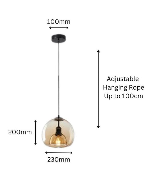 Illuminate your space with the sleek and modern design of our Amber Glass Hanging Pendant Light. Featuring a beautiful amber glass shade, this pendant light adds a warm and inviting glow to any room. The perfect combination of style and function.