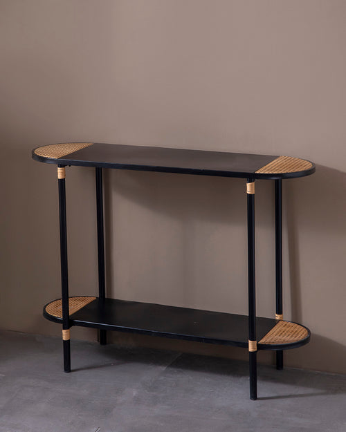 Elevate your entryway or living space with this Modern Black Cane Console Table. Its sleek black frame paired with natural cane detailing offers a stylish blend of contemporary and rustic charm. Perfect for displaying decor or organizing essentials, this table adds both function and flair to any room. Compact yet sturdy, it fits seamlessly in hallways or behind sofas. A versatile piece that enhances your home’s aesthetic effortlessly.