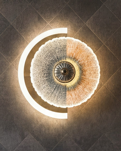 Upgrade your décor with this Modern Designer Glass Wall Light crafted to make a statement. The textured, fan-pattern glass shade diffuses light beautifully, creating a soft glow, while the gold-tone backplate adds a premium, artistic touch.