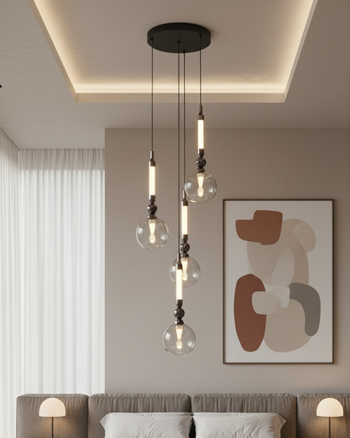 The layered heights of the lights make it visually dynamic, adding depth and elegance to contemporary interiors. Perfect for homes aiming for a modern, artistic, and statement-making lighting piece.