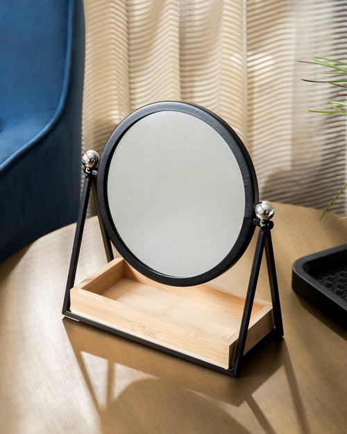 This Modern Tabletop Vanity Mirror With Storage Tray is perfect for organizing your beauty essentials. Its sleek design adds a touch of modernity to any vanity space. The storage tray allows for easy access and organization of your makeup, skincare and other essential items, making your morning routine more efficient.