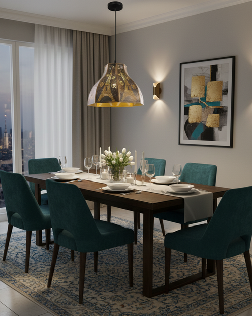 Elevate your interior with the exotic charm of the Moroccan Filigree Pendant Light, a stunning fusion of craftsmanship and ambient elegance. Inspired by traditional Moroccan artistry, this pendant features an intricately perforated metal shade that casts captivating patterns of light and shadow across your space.