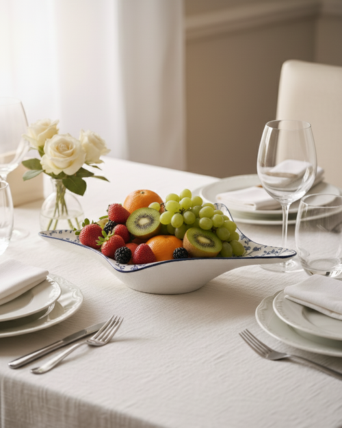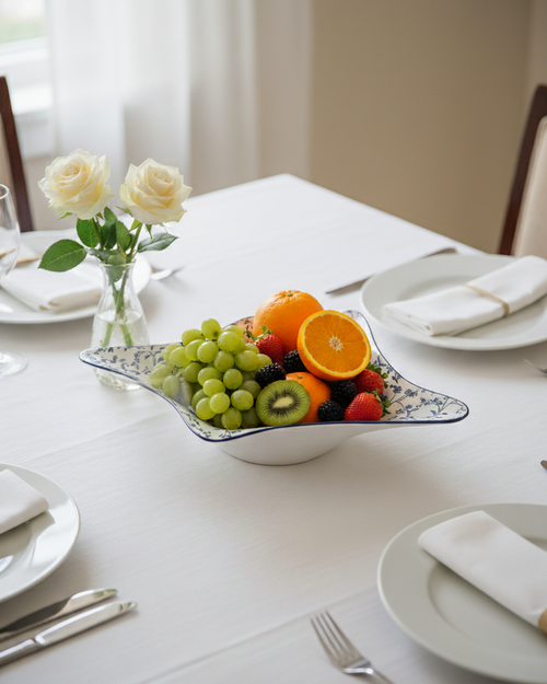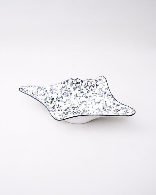 The Blue Blossom Wavy Ceramic Bowl showcases timeless elegance with its handcrafted floral print in classic blue tones. The bowl’s unique wavy edge and organic flowing shape give it an artistic and contemporary charm. Designed with delicate vine and flower motifs, it captures the beauty of nature in every curve.