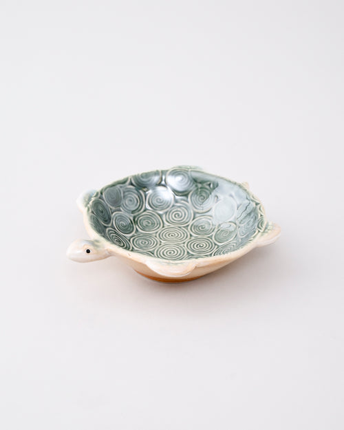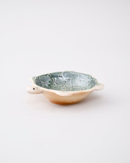 Inspired by the calm beauty of the sea, this Ocean Turtle Textured Ceramic Bowl features a charming turtle shape with a beautifully detailed shell design. The interior showcases spiral wave patterns in deep ocean green, while the outer surface is finished in soft beige tones for a natural, coastal feel. Perfect as a decorative centerpiece, snack bowl, or accent piece for your table, it adds a touch of marine elegance to any space. Handcrafted with care, this bowl brings together art, nature, and functionality in one delightful design.
