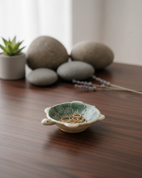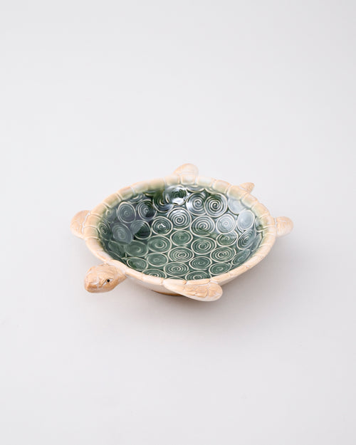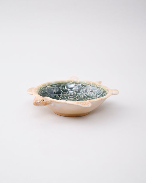 Inspired by the calm beauty of the sea, this Ocean Turtle Textured Ceramic Bowl features a charming turtle shape with a beautifully detailed shell design. The interior showcases spiral wave patterns in deep ocean green, while the outer surface is finished in soft beige tones for a natural, coastal feel. Perfect as a decorative centerpiece, snack bowl, or accent piece for your table, it adds a touch of marine elegance to any space. Handcrafted with care, this bowl brings together art, nature, and functionality in one delightful design.