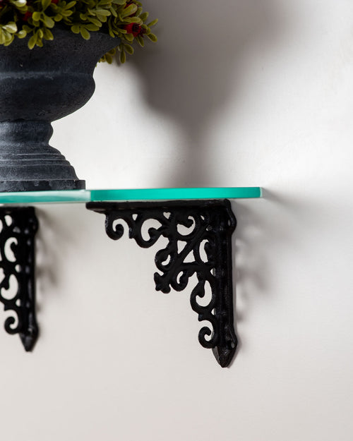 It comes in a set of 2 and can be mounted on your walls with the help of nails. Place a wooden or a glass shelf on top for a look that is classic.