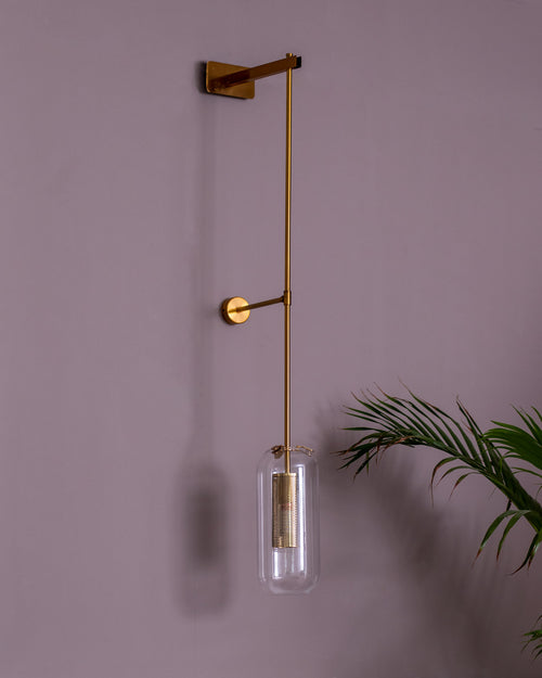 Add a touch of modern sophistication to your home with this single light wall sconce. This wall sconce features a brushed brass finish and a grey glass shade.