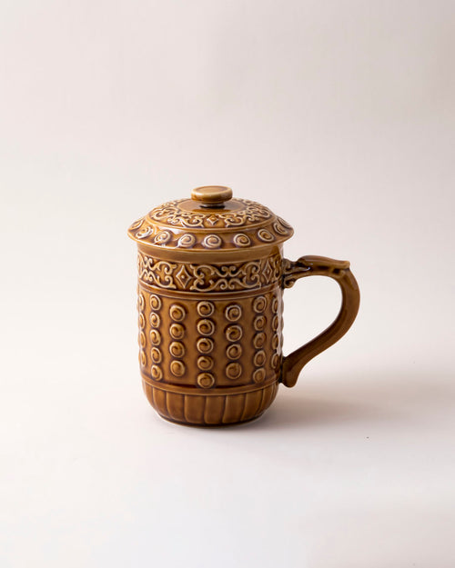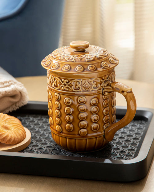 This Oriental Harmony Mug is the perfect addition to your morning routine. With its sleek design and included lid, your beverage stays hot and secure. Crafted from quality materials, this mug provides a classic and timeless look. Enjoy your coffee or tea in style with this elegant and functional mug.