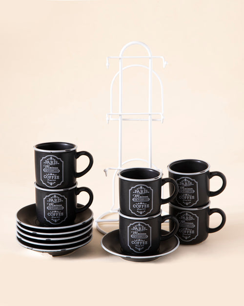 Evoke vintage-inspired charm with this six piece teacup and saucer set, which brings an elegant touch to every morning cuppa. The set features a traditional motif highlighting the famous Parisian Maison Tea brand. It is dishwasher and microwave safe, ensuring easy cleaning and added practicality.