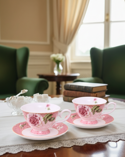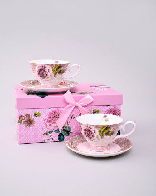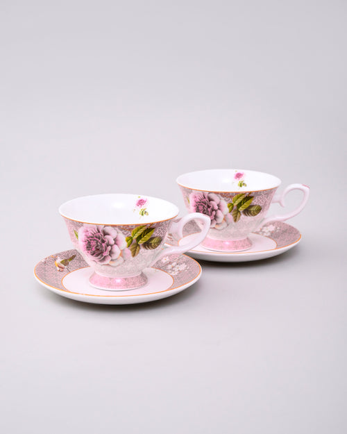 Peony Petals Tea Cup & Saucer Pink - Set Of 2