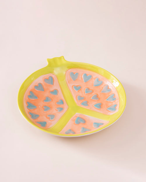Great at a table for serving hors d'oeuvres, vegetables, snacks or baked goods. Guaranteed to bring a whimsical feeling to any table, this platter features an embossed body with elegant colours.