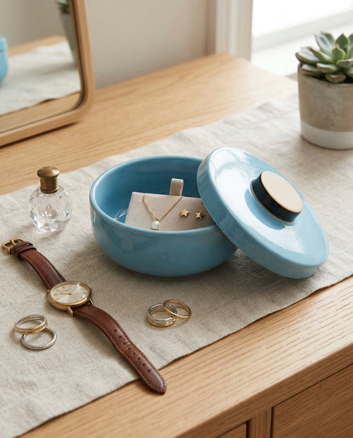Perfect for storing jewelry, keys, or small essentials, it adds an elegant accent to your dresser, nightstand, or workspace. A modern blend of simplicity and sophistication for everyday use.