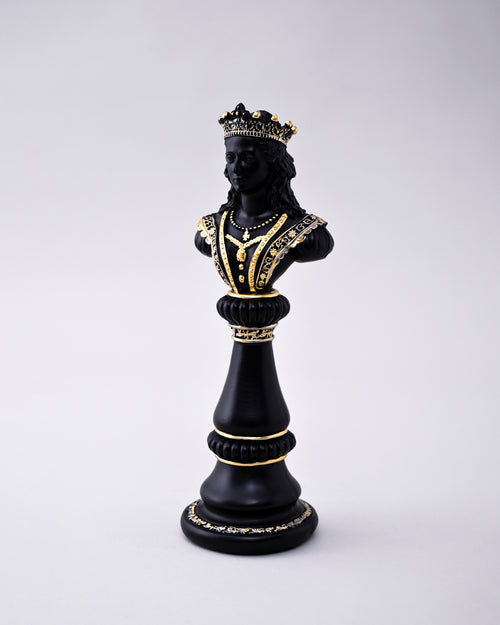 Add a touch of regal charm to your space with this oversized chess piece. Designed in the shape of a chess queen, this elegant black and gold piece reflects power, grace, and sophistication. Its sleek curves and glossy finish make it a perfect statement accent for coffee tables, consoles, or office desks.