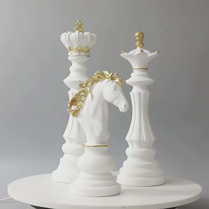 Add a touch of regal charm to your space with this Royal Queen Tabletop Décor. Designed in the shape of a chess queen, this elegant white and gold piece reflects power, grace, and sophistication. Its sleek curves and glossy finish make it a perfect statement accent for coffee tables, consoles, or office desks.