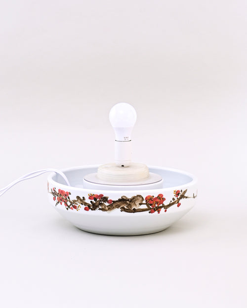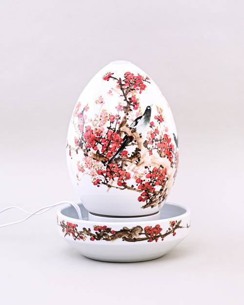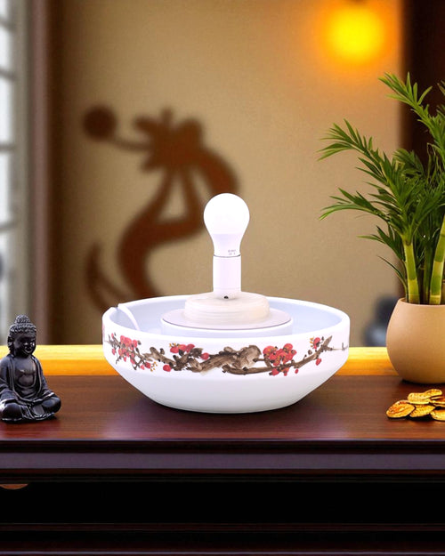The Red Blossom Harmony Ceramic Fountain Lamp features a captivating hand-painted design of vibrant red blossoms and elegant green birds, symbolizing love, prosperity, and tranquility. Crafted from premium ceramic, it creates a gentle water flow that adds a soothing and calming ambiance to any space.