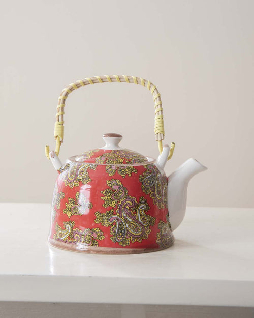 Paisley Ceramic Tea Kettle - Red