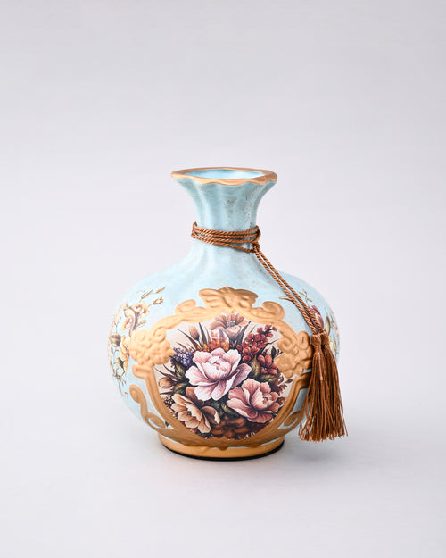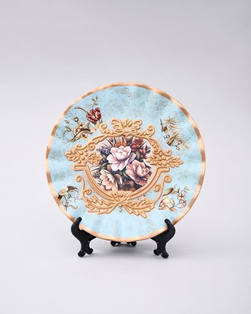 Regal Bloom Blue & Gold Vase & Decorative Plate - Set Of 3