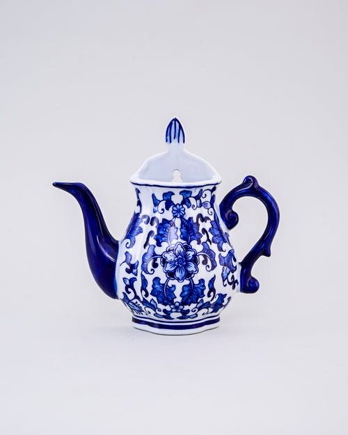 Painted in a traditional blue and white palette, this wall mounted kettle comes with a flat back and creates visual drama for your walls. Use this as a standalone wall accent or place your favorite flowers to create your own unique wall accent.