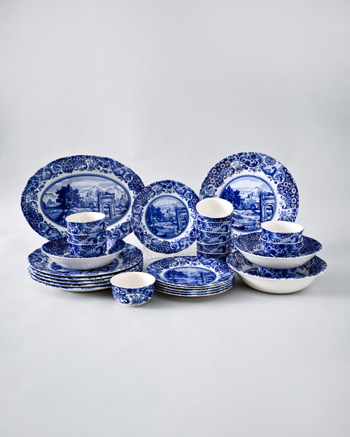 The Roman Light Blue Dinner Set captures timeless elegance with its intricate blue landscapes and ornamental patterns inspired by Roman artistry. Crafted from high-quality ceramic, this complete set includes plates, bowls, cups, and serving platters perfect for family meals and festive gatherings.