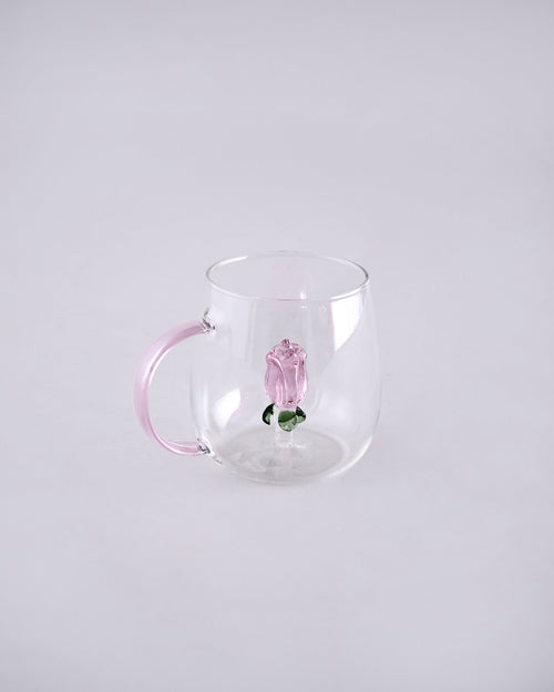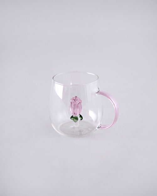 This delicate Rose Bloom Glass Mug features an enchanting pink rose sculpted inside the clear glass body, symbolizing elegance and romance. The soft pink handle adds a graceful touch, perfectly complementing the floral design. Ideal for tea, coffee, or floral-themed décor, this mug combines beauty and craftsmanship turning every sip into a serene, aesthetic experience.