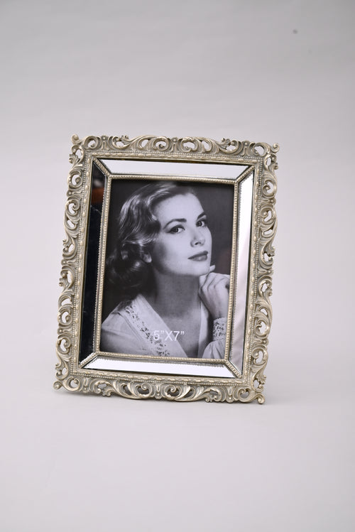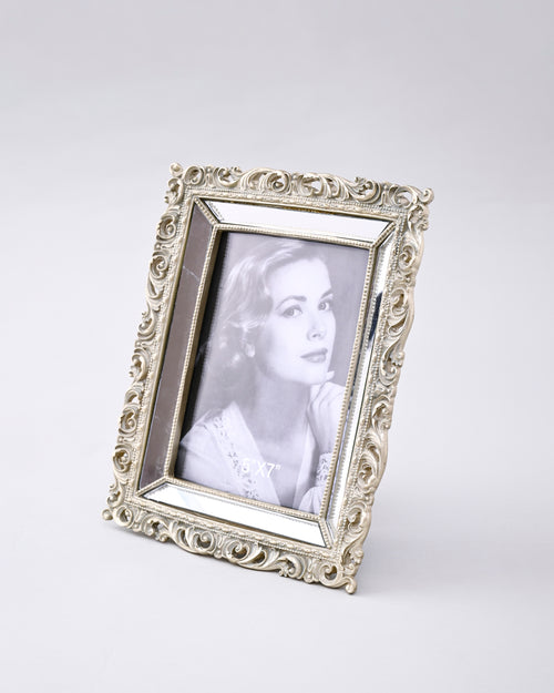 This classic Victorian themed photo frame features distressed mirrored borders with gold accents - a unique colour combination! Bringing in a touch of regal elegance, this majestic frame extends on each side ornate, Victorian-style carvings, making the frame perfect to add the regal touch to your memories and your home.