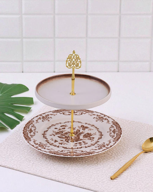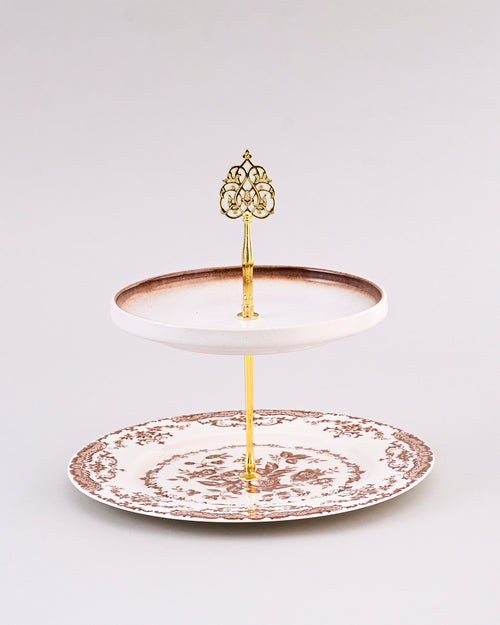 Use these dainty cake stands to serve your favourite desserts and hors-d'oeuvres. Our 2-tier cake stand adds a touch of elegance to any occasion, from an elegant dinner to a casual gathering. Perfect for desserts, pastries, and finger foods. This classic accessory gives your tabletop the ideal presentation at your next party.