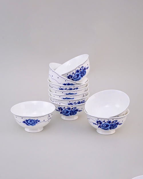 This royal blue blossom katori features a stunning floral design with intricate blue patterns on a classic white base, giving it a timeless and luxurious appeal. Crafted from premium-quality bone china, these katoris are perfect for serving desserts, snacks, curries, and soups in style.