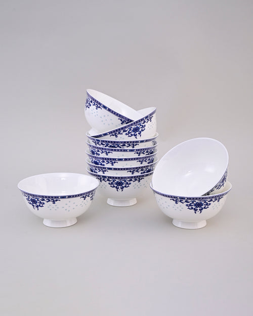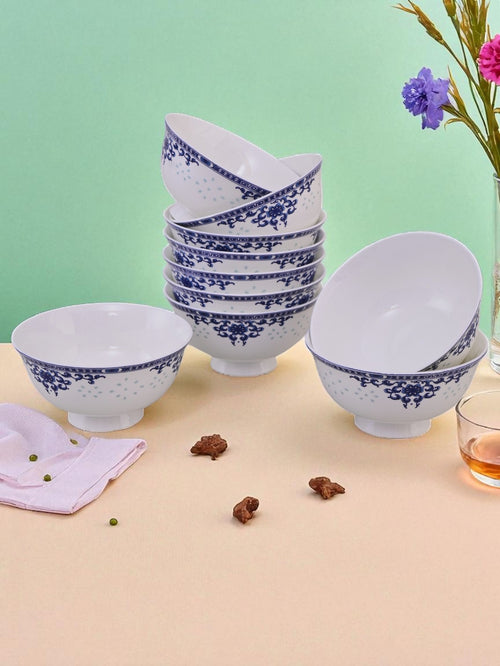 This royal indigo charm katori features an elegant blue vine design along the rims, giving it a luxurious and classic appeal. Crafted from premium-quality bone china, these katoris are perfect for serving snacks, soups, desserts, and curries with style.