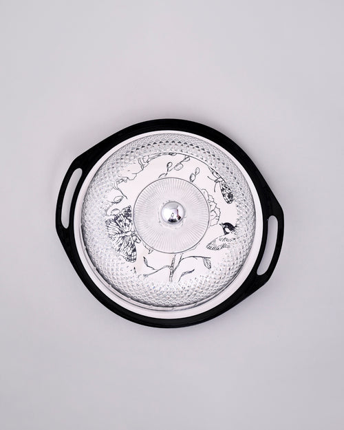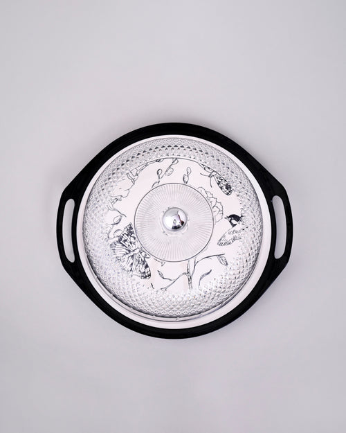 The Royal Prism Cake Stand with Glass Dome is a stunning centerpiece for your table, combining luxury with functionality. Designed with a faceted prism-cut glass dome, it sparkles beautifully under the light, while the elegant silver knob adds a refined finishing touch.