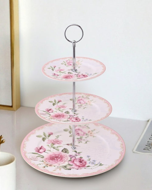 Use these dainty cake stands to serve your favourite desserts and hors-d'oeuvres. Our 3-tier cake stand adds a touch of elegance to any occasion, from an elegant dinner to a casual gathering. Perfect for desserts, pastries, and finger foods. This classic accessory gives your tabletop the ideal presentation at your next party.