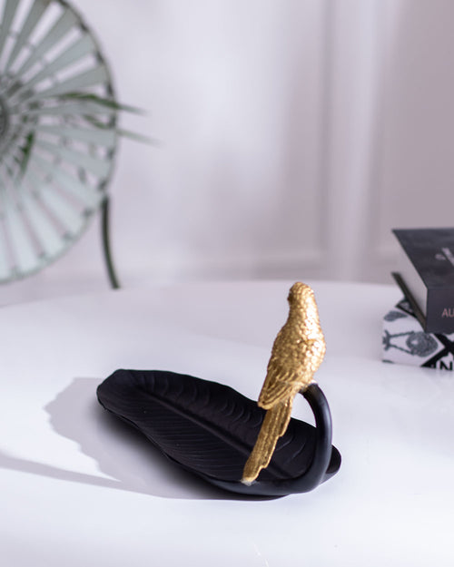 Rustic Gold Bird on Leaf Platter