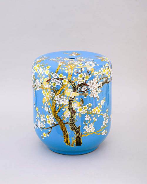 Enhance your home décor with this Mint Blossom Elegance Garden Stool, featuring a refreshing blue glaze adorned with exquisite hand-painted white blossoms and golden accents. The intricate floral detailing combined with a glossy finish brings a luxurious and artistic touch to any setting.