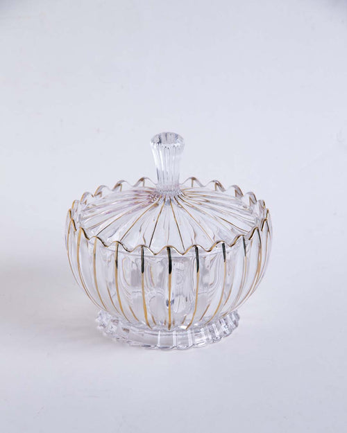 Scalloped Edge Crystal Glass Candy Jar with Lid