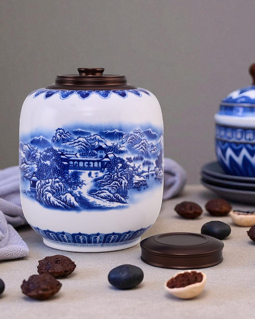 - Snug airtight lid and light-blocking porcelain keeps contents fresh and dry.