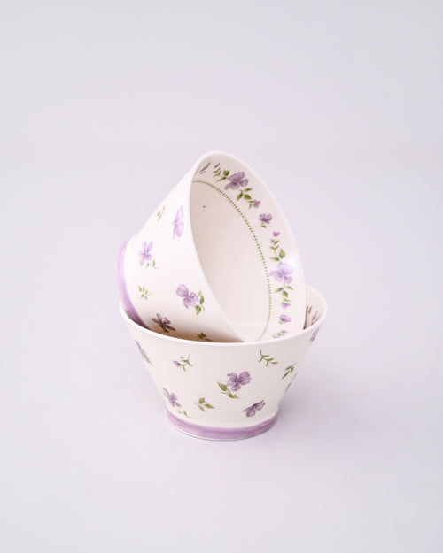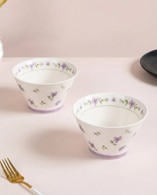 Bring a touch of calm elegance to your table with the Serene Petal Bowl. Designed with soft purple floral patterns on a pristine white base, this bowl captures the peaceful beauty of blooming petals.