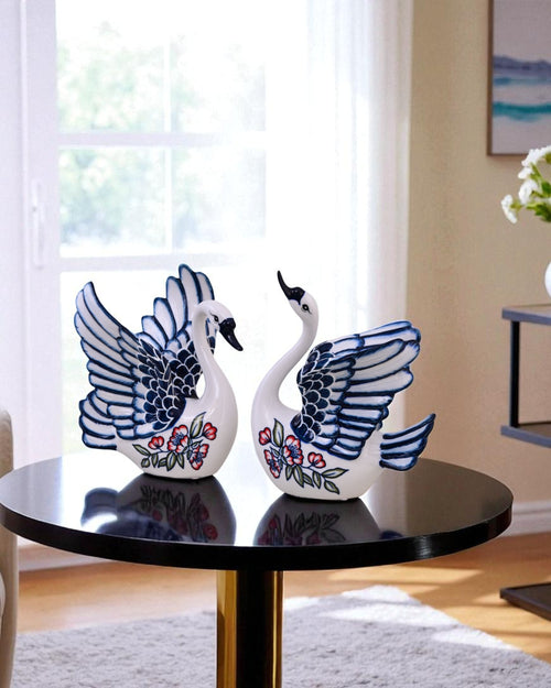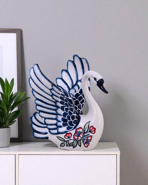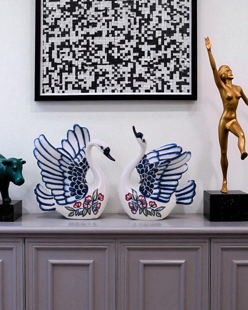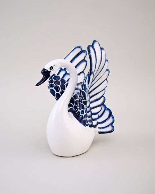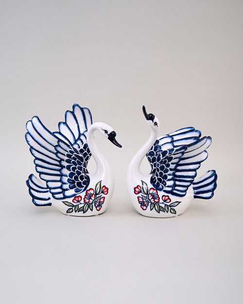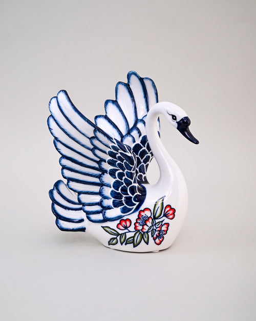 Swans symbolise grace and beauty on many levels. They are associated with love, music, and poetry. The ethereal figurine displays delicate features in intricate details such as the feathers of the bird and the individually laid petals of the flowers.
